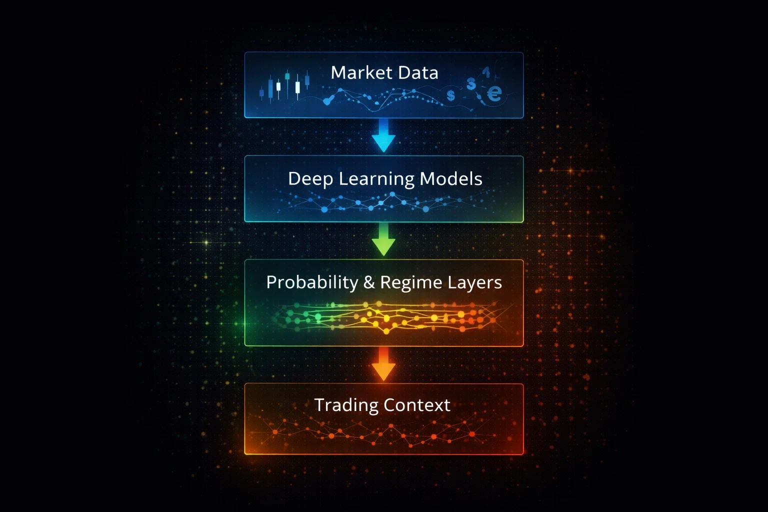 Deep learning is used to model market structure and risk — not to generate buy or sell signals.